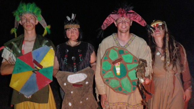 Druhý příběh byl „Zlaté dobrodružství“. Kmen Muisků uložil zlatý poklad do jezera Guatavita….. a tak vznikla legenda o zlatém městě Eldorádu. Pak začala zlatokopecká horečka…na táboře jsme si povídali nejen o kmeni Muisků, ale i sledovali různé osudy různých lidí, kteří se vydali na Divoký západ .